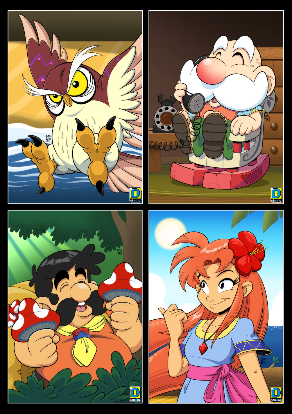 Ilustraciones originales realizadas por Diego Moreno en un Pack de 5 Prints en alta resolución listas para descargar e imprimir, basadas en algunos de los personajes del videojuego Legend of Zelda - Link's Awakening. El Pack incluye: